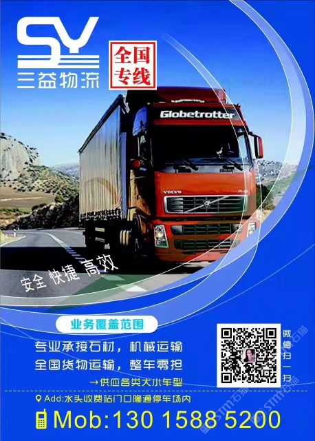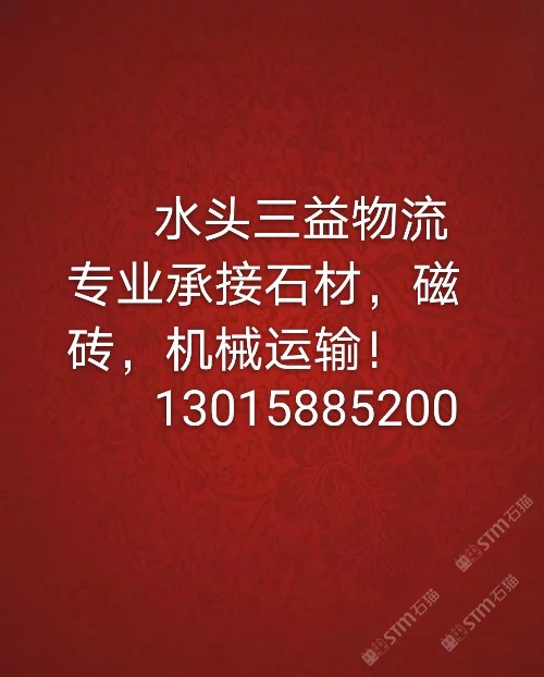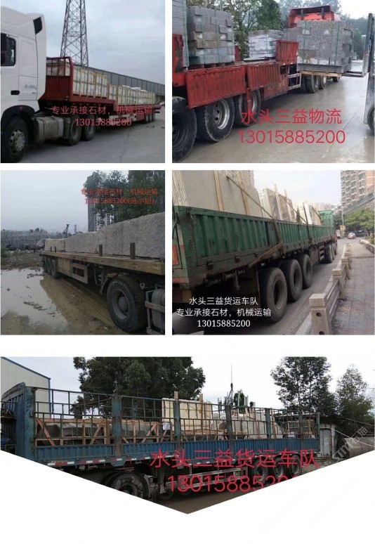 真誠做人,誠信做事! 專業(yè)承接各類石材,機(jī)械運(yùn)輸! 供應(yīng)各類大小車型! 可買保險(xiǎn),可來運(yùn)輸發(fā)票! 13015885200?。ㄐ£懀? 辦公室地址:水頭安平碼頭,宇泉停車場(chǎng)內(nèi)