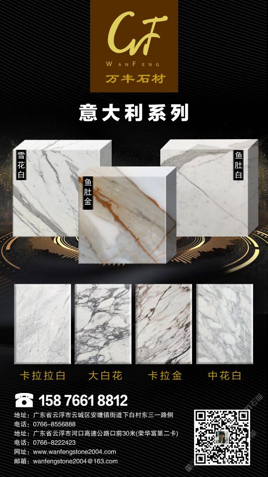 萬(wàn)豐石材有限公司-是一家專業(yè)實(shí)力較強(qiáng)的石材企業(yè),主要以銷售與石材深加工的一家港資企業(yè),分別在美國(guó)、香港、福建、云浮等地設(shè)立公司。\ 公司主營(yíng)雪花白、大花白、卡拉拉白、中花白、魚(yú)肚白、魚(yú)肚金等一系列以白色經(jīng)典,簡(jiǎn)約輕奢為理念的意大利進(jìn)口白色大理石。憑著已成立十多年的悠久歷史,現(xiàn)公司擁有優(yōu)秀的銷售、設(shè)計(jì)、生產(chǎn)、售后團(tuán)隊(duì),以及多年來(lái)與客戶保持良好的緊密合作關(guān)系,產(chǎn)品已遠(yuǎn)銷泰國(guó)、加拿大、美國(guó)、中東等國(guó)內(nèi)外市場(chǎng),產(chǎn)品質(zhì)量與服務(wù)也獲得一致好評(píng)。\ ?萬(wàn)豐石材白色系列產(chǎn)品具有質(zhì)地細(xì)膩、紋理豐富、簡(jiǎn)約時(shí)尚、經(jīng)典輕奢的特性,與現(xiàn)代設(shè)計(jì)裝飾風(fēng)格融為一體,廣泛應(yīng)用于家居、酒店、別墅會(huì)所、公共場(chǎng)所等室內(nèi)外裝飾工程,是選擇裝飾材料的產(chǎn)品,歡迎各界人士的光臨與合作。