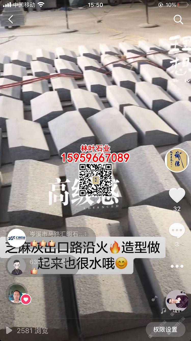 發(fā)布信息: 林葉石業(yè)長(zhǎng)泰工廠(林總15959667089微信同號(hào))專業(yè)老礦芝麻黑與芝麻灰供應(yīng)商,專注于出口及高品質(zhì)工程國(guó)內(nèi)外園林景觀石材;主營(yíng):老礦芝麻黑墓碑石、正礦吳田山G654窗臺(tái)板、G654芝麻黑牛鼻子、芝麻黑石材游泳池蓋板、老礦芝麻黑出口高品質(zhì)工程板、老礦654小方塊馬蹄石、芝麻灰G655路沿石、深灰麻石材、中灰麻石材、深灰色花崗巖、黑色麻石等光面、燒面、荔枝面、墓碑石材、地鋪石材、園林景觀工程、路沿石材等;林葉石業(yè)寧德工廠(葉總18050650127微信同號(hào))專業(yè)新礦芝麻黑寧德小藍(lán)寶,廠礦一體,體格優(yōu)惠,真誠(chéng)希望您的光臨與合作?。暶魃蟼鳟a(chǎn)品圖片均是本廠加工生產(chǎn))