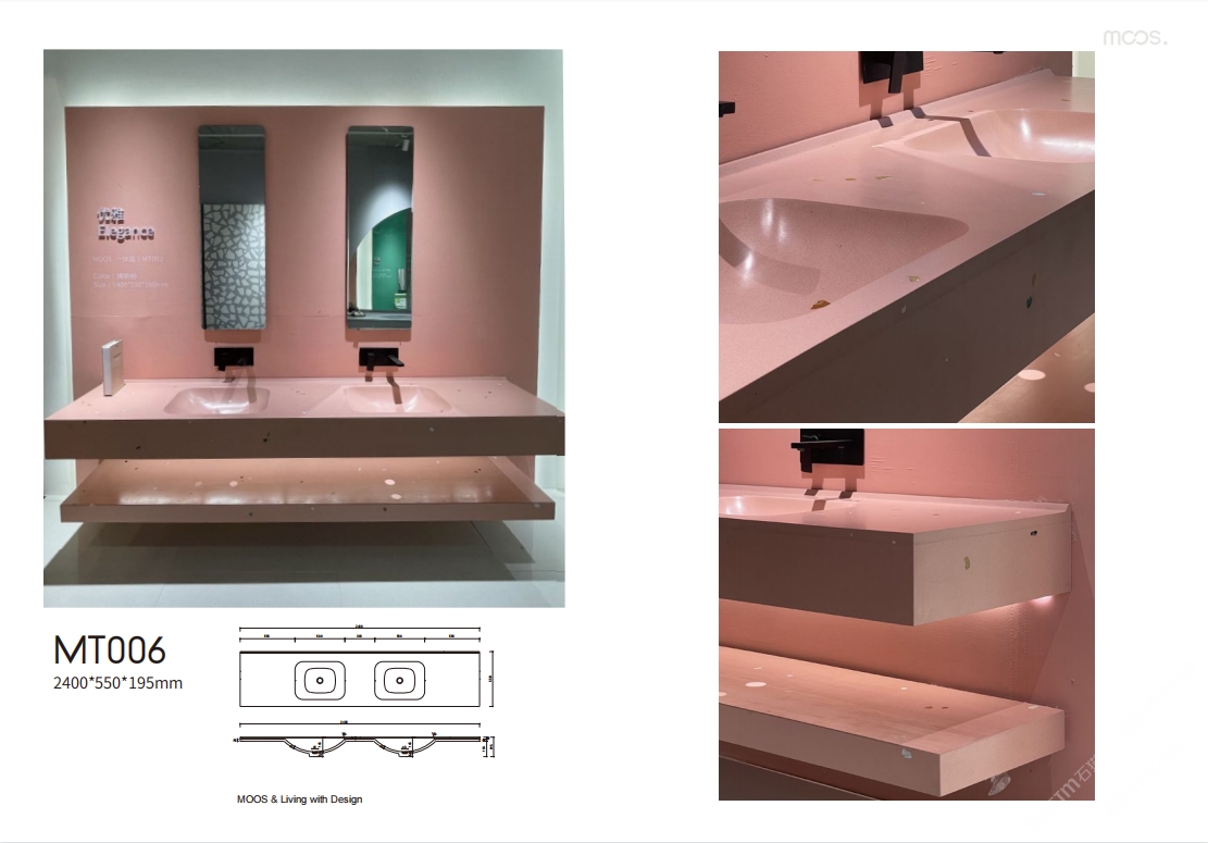 「MOOS魔石衛(wèi)浴」無機水磨石一體化臺盆設計