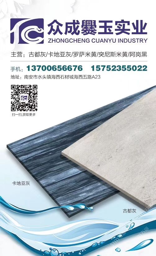云南眾成爨玉實業(yè)有限公司 聯(lián)系人:譚先生    137****6676 查看 137****6676 查看 主營范圍: 大板批發(fā)、荒料、礦山、大理石加工、石材外貿(mào)、 企業(yè)地址:福建泉州南安市水頭鎮(zhèn)