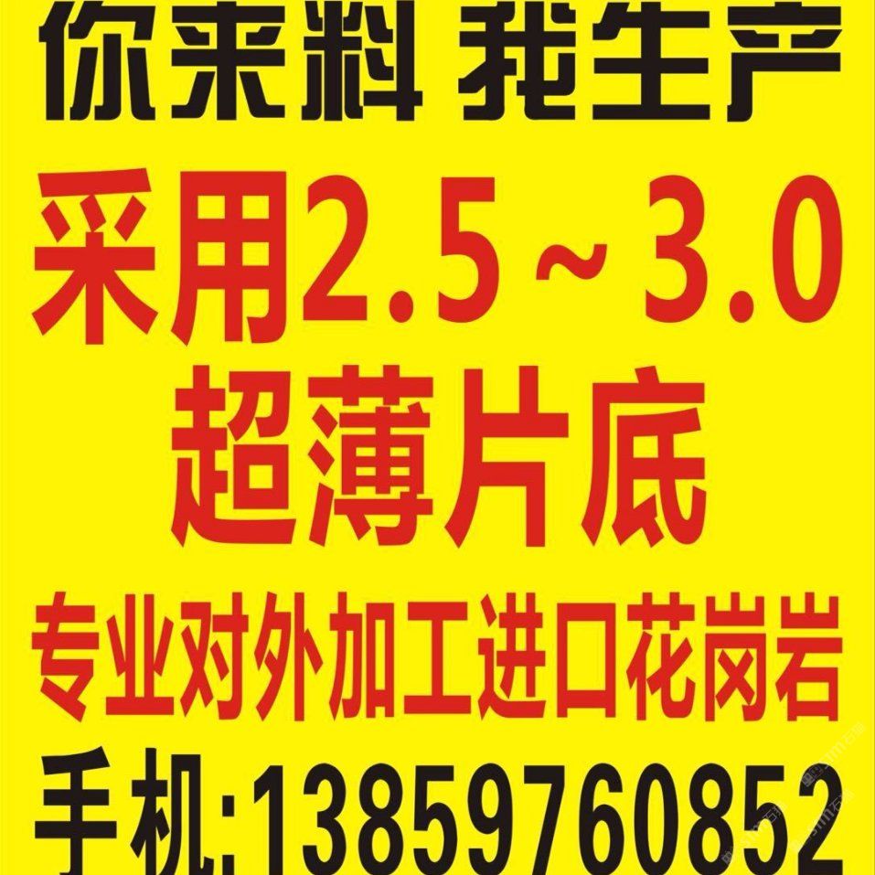 發(fā)布信息: 一、大量生產(chǎn)5/8/10毫米花崗巖超薄板 二、3.0鋸片對(duì)外加工市場(chǎng)板工程板 【福建超悅石材薄板節(jié)能科技有限公司】 歡迎來(lái)料加工13859760852
