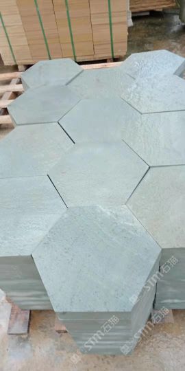 四川青砂巖(青石、青沙巖、綠砂巖、綠沙巖、青砂巖)火燒面 六邊形 地鋪 外墻