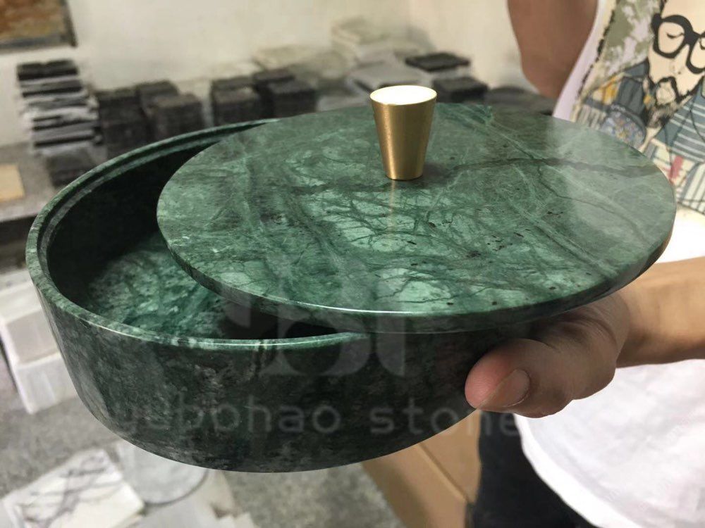 大花綠圓形收納盒——石材工藝品