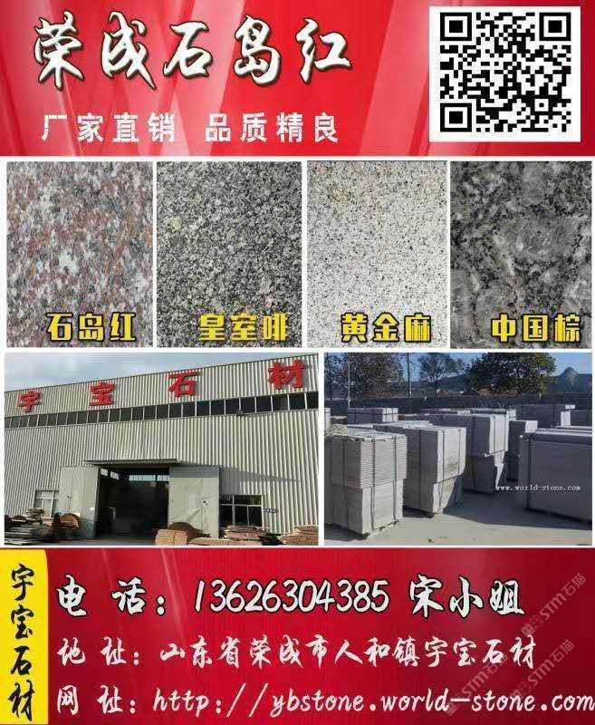 發(fā)布信息: 山東榮成市宇寶石材廠家直銷:皇室啡、石島紅8#、黃金麻,石島蝦紅(新品)、皇室珍珠、皇室玫瑰、皇室棕鉆、紫晶鉆、榮成灰、威海白麻、黃金麻等系列毛板,工程板,蘑菇石及臺階石異型石材產(chǎn)品。另有大量地鋪庫存拋售。真摯邀請新老客戶,來廠實際考察,一次合作,為友 。請加好友,找一個合適的廠家不容易,找一個可以長期合作的廠家更不容易,以防備用。電話:13626304385微信號同手機(jī)號13626304385