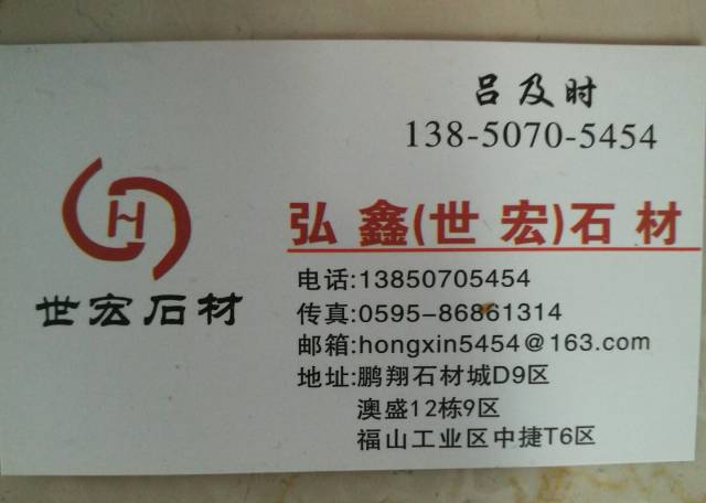 世弘石業(yè) 聯(lián)系人:呂先生    138****5454 查看 135****9039 查看 主營(yíng)范圍: 大板批發(fā)、 企業(yè)地址:福建泉州輝盛大板市場(chǎng)B區(qū)-4 萬和石材