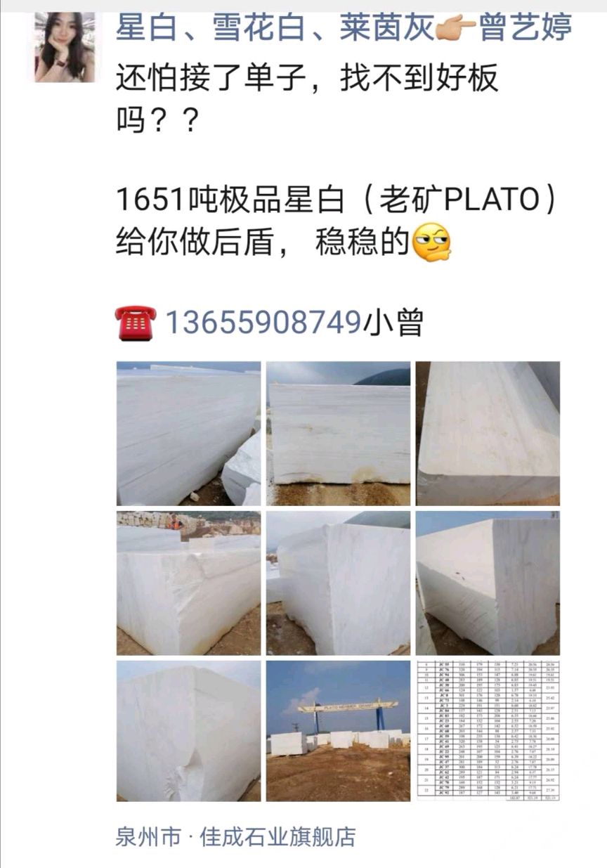發(fā)布信息: 大量現(xiàn)貨,老礦PLATO星白1651噸, 荒料可賣(mài),可單挑,可訂切! 聯(lián)系電話:13860761011呂