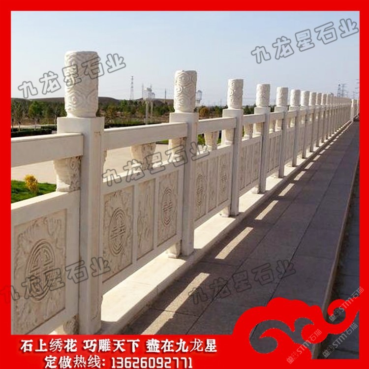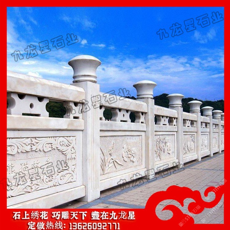 發(fā)布信息: 高速公路石雕護(hù)欄 花崗石欄桿加工廠家——九龍星石業(yè)。 花崗石欄桿加工廠家在設(shè)計的時候要規(guī)定尺寸,花崗巖石材的尺寸和規(guī)模決定了它的價格標(biāo)準(zhǔn) ,石欄桿廠家在加工欄桿的時候根據(jù)尺寸大小確定好花崗巖石欄桿的形狀,再將花崗 巖石欄桿制成不同的造型,這些造型目前可以分為歐式的、連續(xù)式的、寶瓶式的、簡 易式的等等、這些造型可以的多樣性可以適用于任何場所中。 高速公路石雕護(hù)欄的制作造型采用橫檔以及花飾,石欄桿安裝的場所一般在河邊,護(hù)城河使用量 大,石欄桿制作雕刻亮點(diǎn)在于立桿的設(shè)計,立桿的制作可以柱子成寶瓶柱或者花瓶柱 ,欄桿的制作根據(jù)不同地方的應(yīng)用在雕刻制作上的樣式上也不同。石欄桿的安裝在各 大建筑領(lǐng)域中應(yīng)用也很多,會有局部的鏤空形式,這種制作造型的石欄桿在景觀橋上 的使用頻率較多。 石雕欄桿作為橋上的扶手,主要是承擔(dān)兩個作用,一是便于游客手扶,二是防止行人 或者是機(jī)動車墜入橋下,因為它的作用所以廠家在制作的時候要按照對應(yīng)要求來進(jìn)行 制作。因為人們走在橋上的時候會手扶石雕欄桿,所以這就要求欄桿的表面要打磨的 相對舒適。