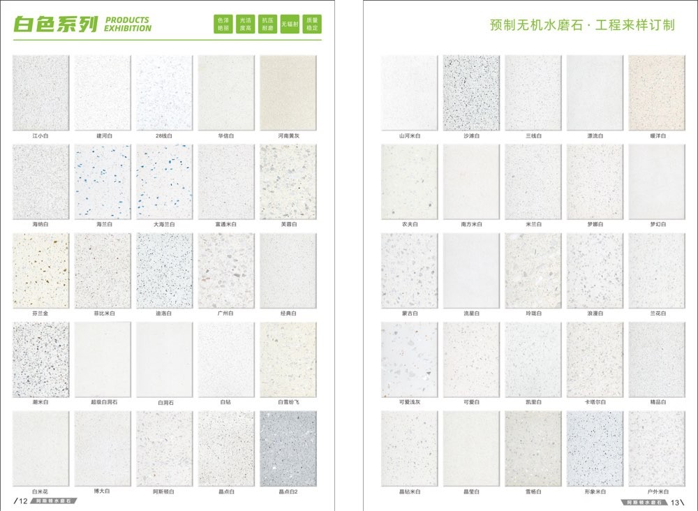 發(fā)布信息: #阿斯頓水磨石 新版畫冊預告,喜歡嗎 純無機水磨石,專業(yè),品質保證! ① 無樹脂、天然花色 ② 可定制任意款式(設計/尺寸) ③ 來板仿樣2~3天完成 ④ 生產、銷售、加工一體化