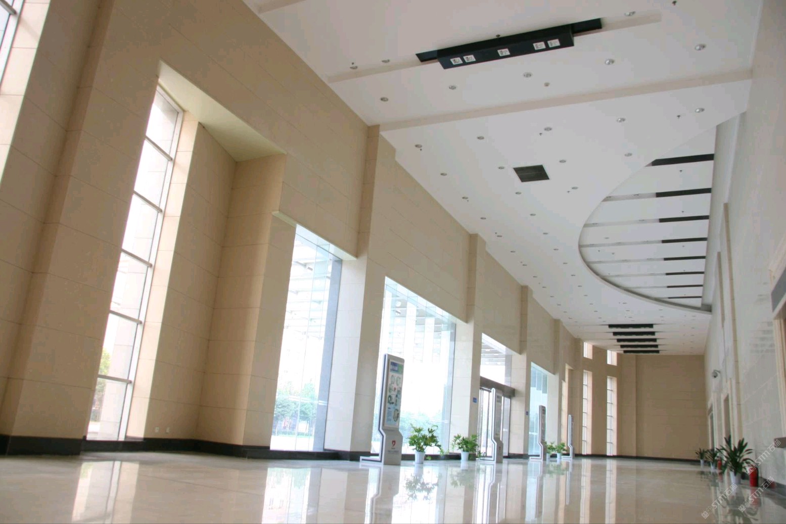 產(chǎn)品應用于醫(yī)院一樓大廳墻面、地面,明亮干凈,密度高,易清潔。整體合諧自然。