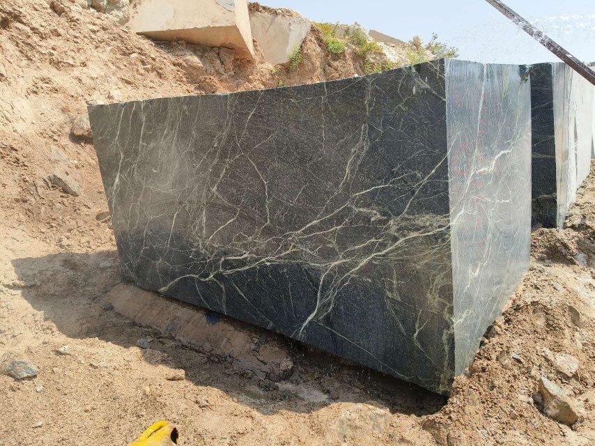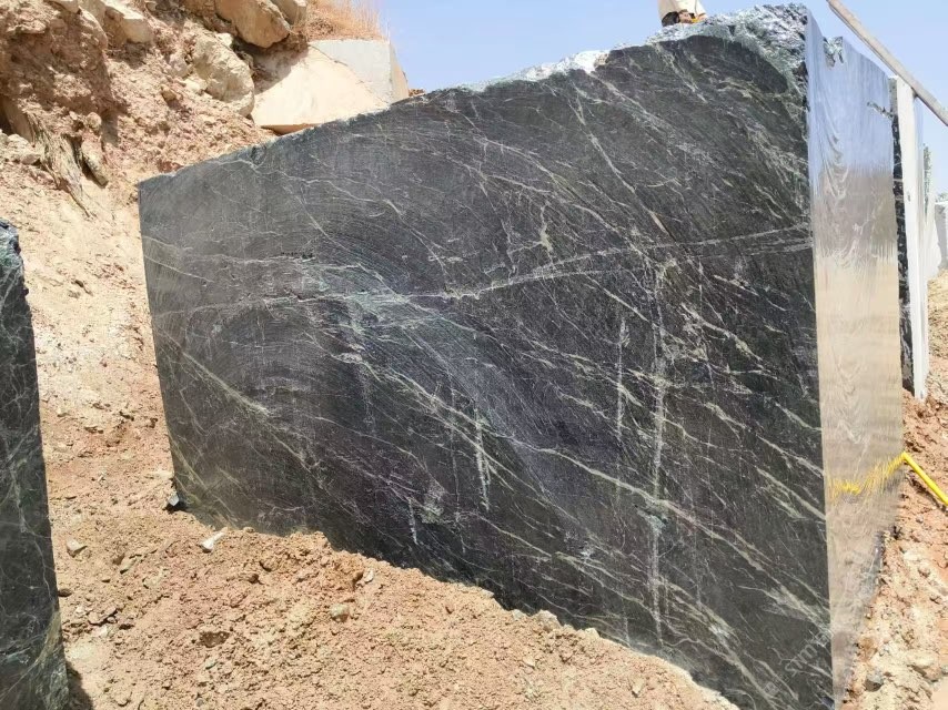 新到普拉達綠荒料,卸云浮國能石材總廠