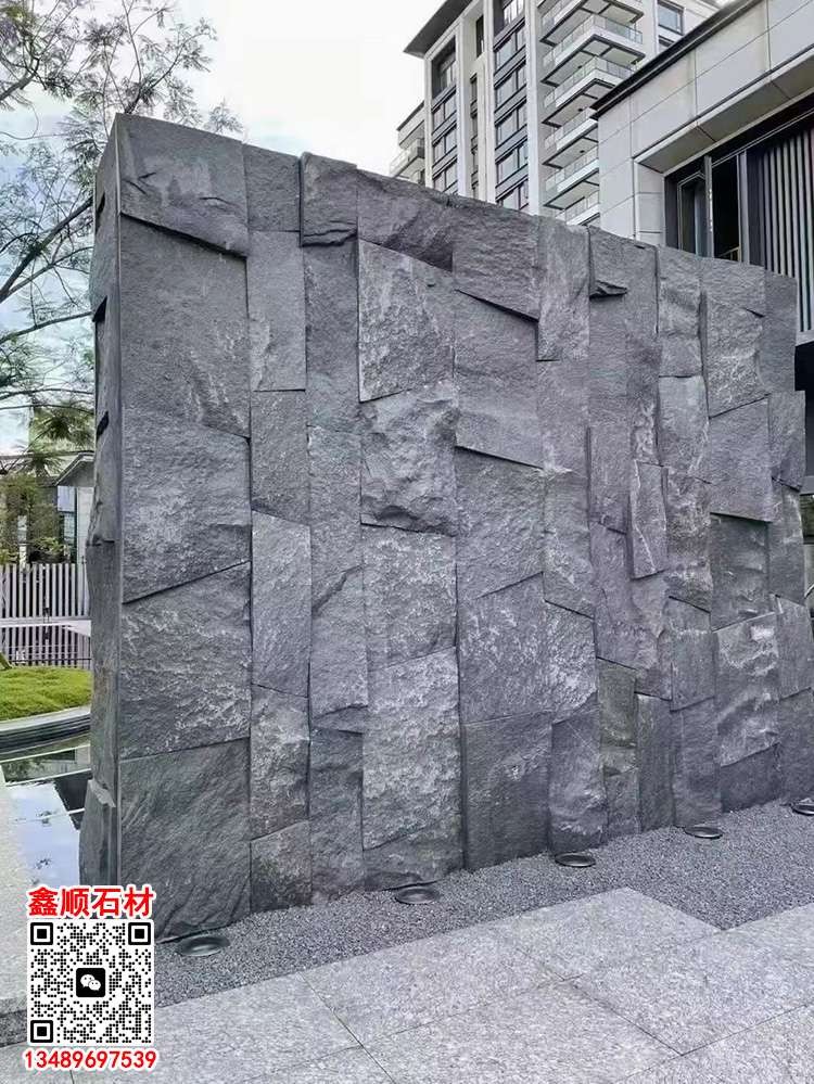 商圈 > 花崗巖 > 芝麻黑石皮背景墻自然面背景墻景觀墻石皮墻文化石墻磚