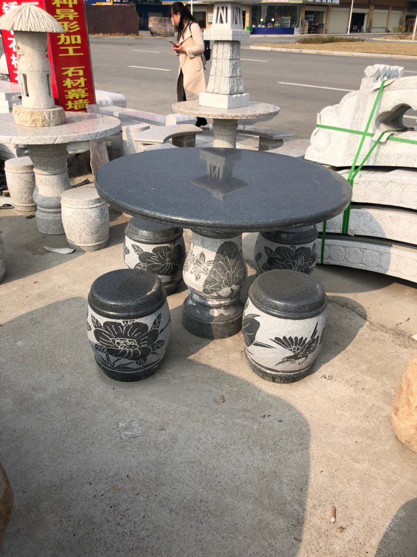 芝麻黑 雕花石桌子