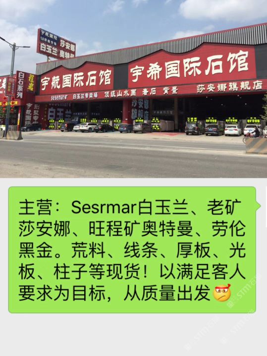 廣東云浮宇航國際石館 聯(lián)系人:梁燕鳳    135****1750 查看 手機(jī)號碼:無 主營范圍: 大板批發(fā)、荒料、礦山、 企業(yè)地址:廣東云浮云城區(qū)G324(福昆線)河口馬崗324國道邊宇航國際石館