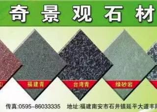 樹奇景觀石材主營(yíng)產(chǎn)品:福建青,漳浦青G612,臺(tái)灣青,森林綠,紅斑巖,綠斑巖,紫斑巖,壽寧紅,紅砂巖,蝴蝶綠,銹石,黃金麻,菊花黃,皇室香檳(老礦),老石板(舊石板)企業(yè)地址:福建泉州南安市石井鎮(zhèn)延平大道豐隆加油站旁