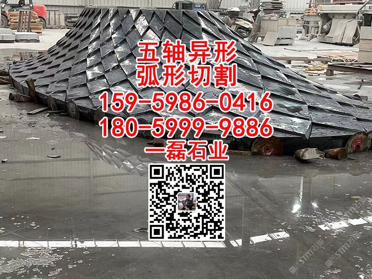 五軸弧形-異形切割-水池水景工程-青石-